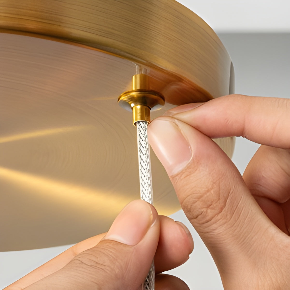 The braided suspension cable is designed for simple, precise height adjustment. Paired with a neatly finished canopy in a warm metal tone, it keeps the ceiling line tidy while giving you flexibility to position the light exactly where you need it.